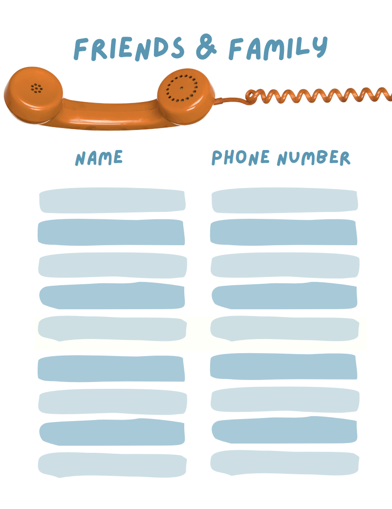 Print and have your child fill out this template for friends and family phone numbers and let the calling begin!